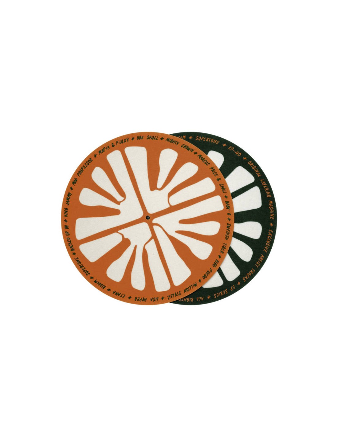 Teenage Engineering EP–40 Slip Mats 2-Pack son dos patinadores de fieltro ligero y resistente con gráficos Riddim & Ting
