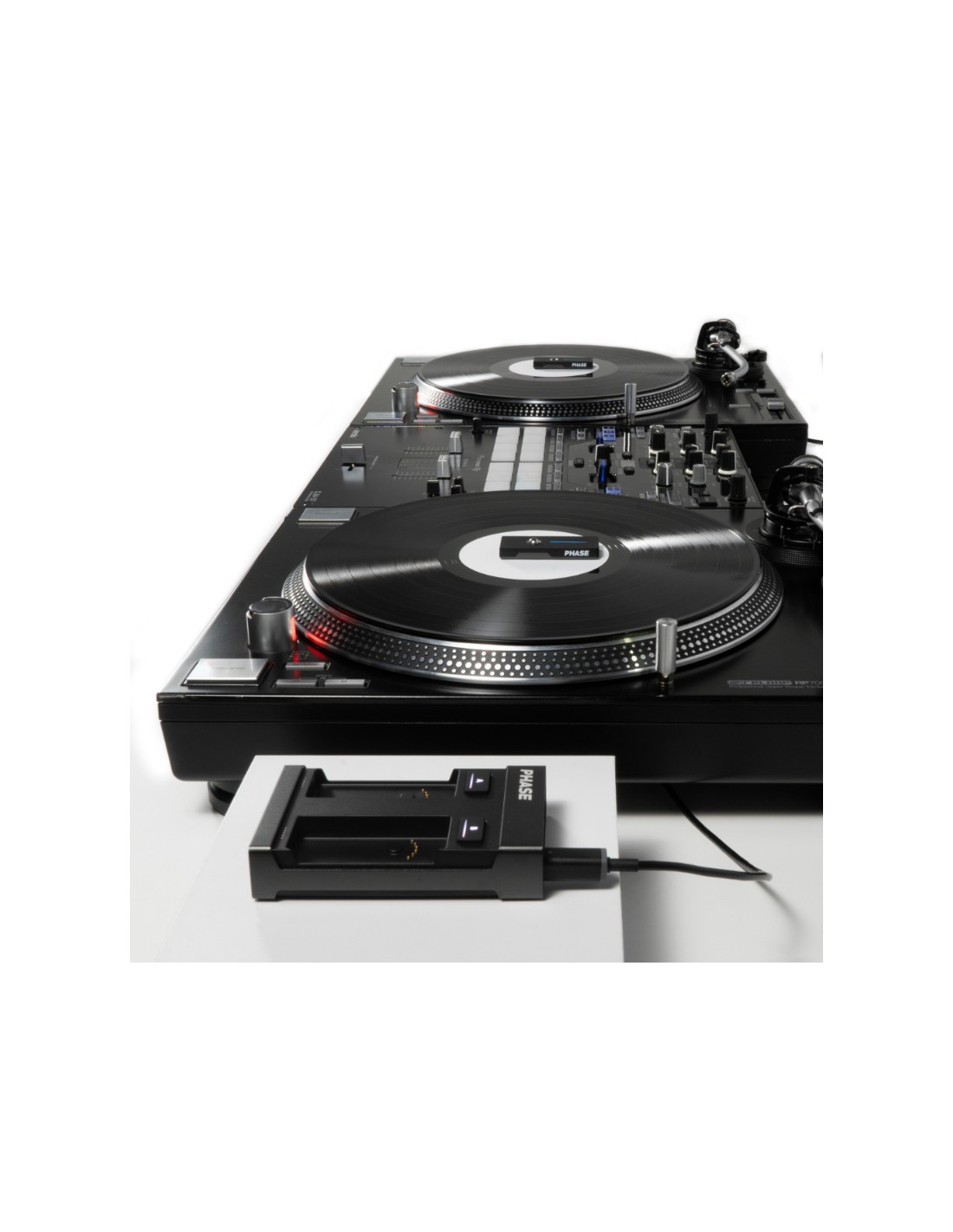Gracias a la tecnología patentada de MWM, los dos controladores remotos capturan información sobre la rotación de los platos y la transmiten inalámbricante al receptor. El receptor procesa los datos y los aplica a la señal digital que genera al sistema. De esta manera, Phase supera los límites de la tecnología DVS al ser capaz de ofrecer una solución de confianza para los DJS.